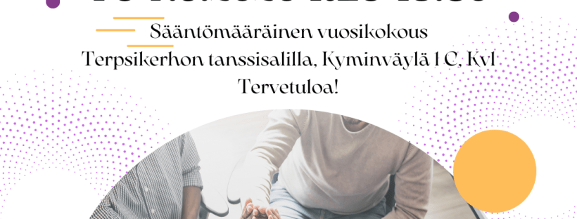 Tervetuloa Terpsikerhon sääntömääräiseen vuosikokoukseen Terpsikerhon tanssisalille, Kyminväylä 1 C, Kuusankoski to 7.5.2026 klo 18:30 Kokouksessa esitetään johtokunnan laatima vuosikertomus ja tilinpäätös sekä toiminnantarkastajan antama toiminnantarkastuskertomus. Päätetään tilinpäätöksen vahvistamisesta ja vastuuvapauden myöntämisestä johtokunnalle ja muille vastuuvelvollisille. Tarkemmat tiedot kokouksesta on säännöissä.