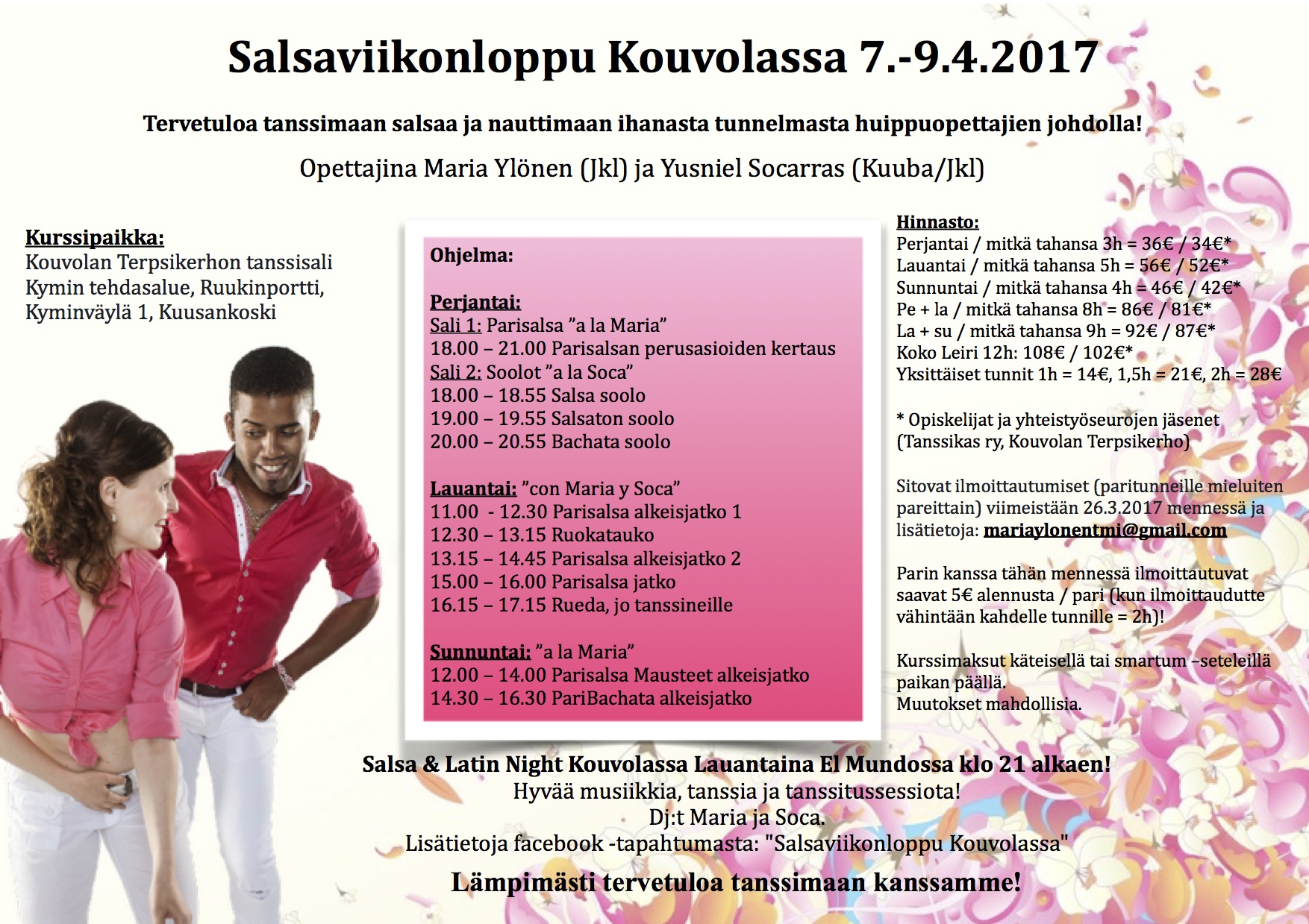 Tervetuloa tanssimaan salsaa ja nauttimaan ihanasta tunnelmasta huippuopettajien johdolla!