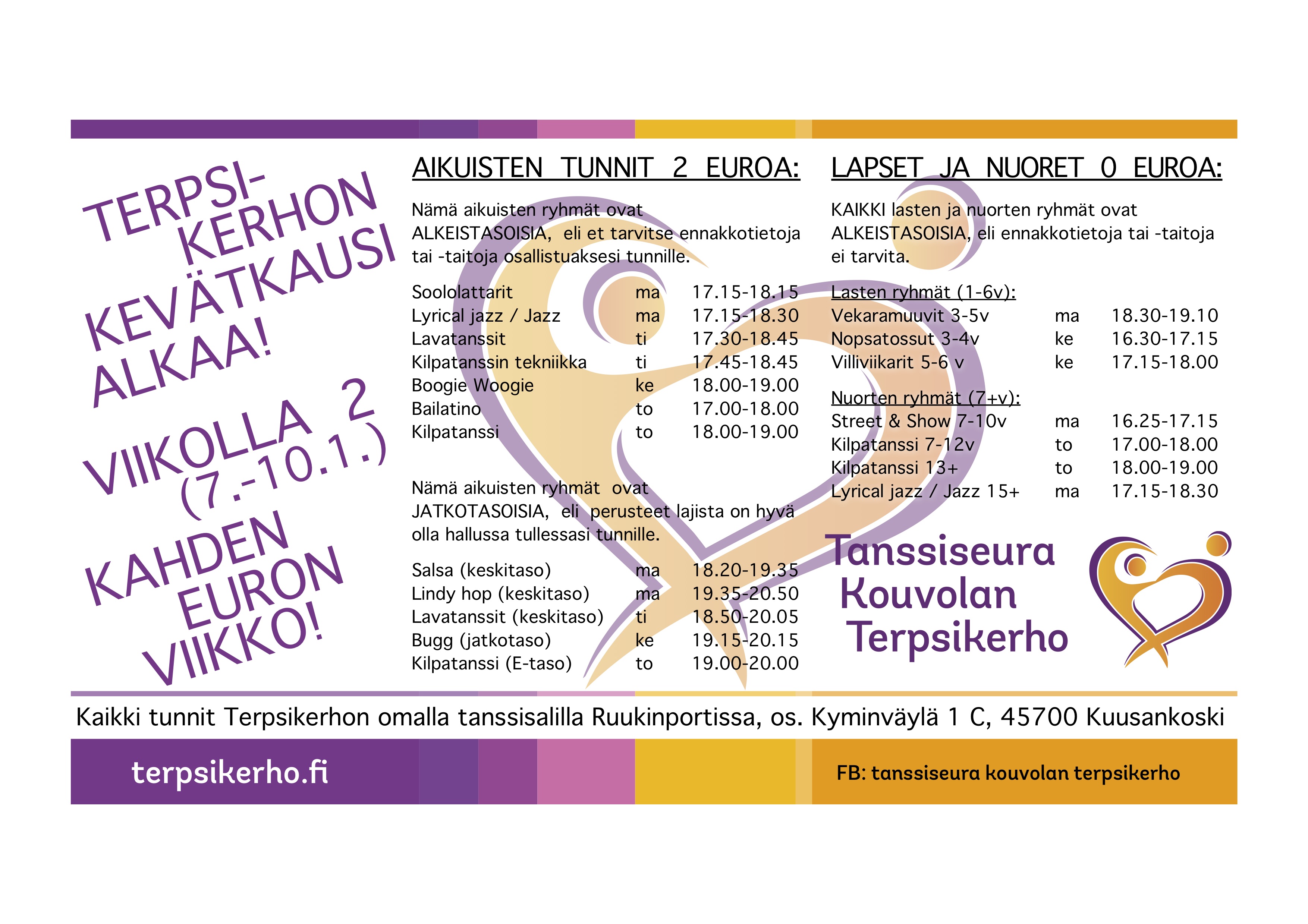 Kevätkausi starttaa maanantaina 7.1. KAHDEN EURON VIIKOLLA!