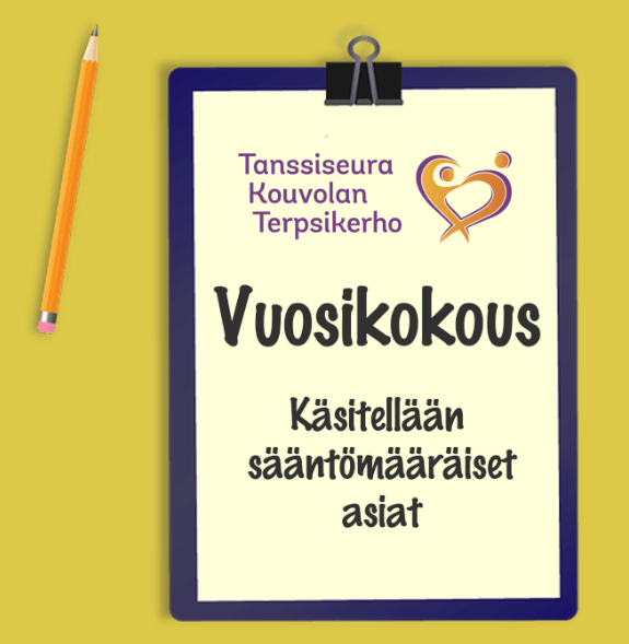 Terpsikerhon sääntömääräinen syyskokous pidetään Terpsikerhon tanssisalilla, Kyminväylä 1, Kuusankoski.