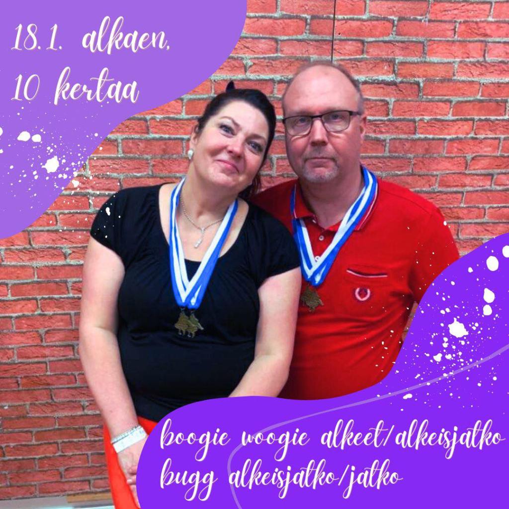 Soile ja Ari Liljan 10 kerran kausi boogie woogien ja buggin parissa jatkuu torstaisin 18.1.2024. Syyskauteen poiketen lajit eriytetään ja voit osallistua vain toiseen lajiin tai molempiin. Yhden lajin hinta 50€/hlö, molempien 90€ (+vuoden 2024 jäsenmaksu).